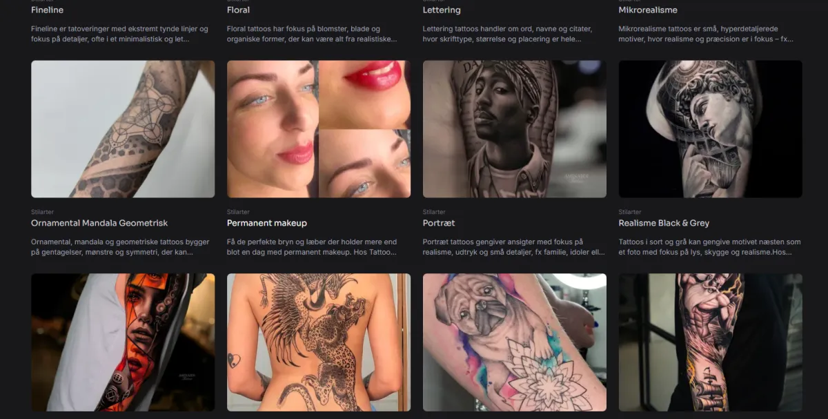 Over 29 artister der alle specialiserer sig i forskellige stilarter står klar til dig.